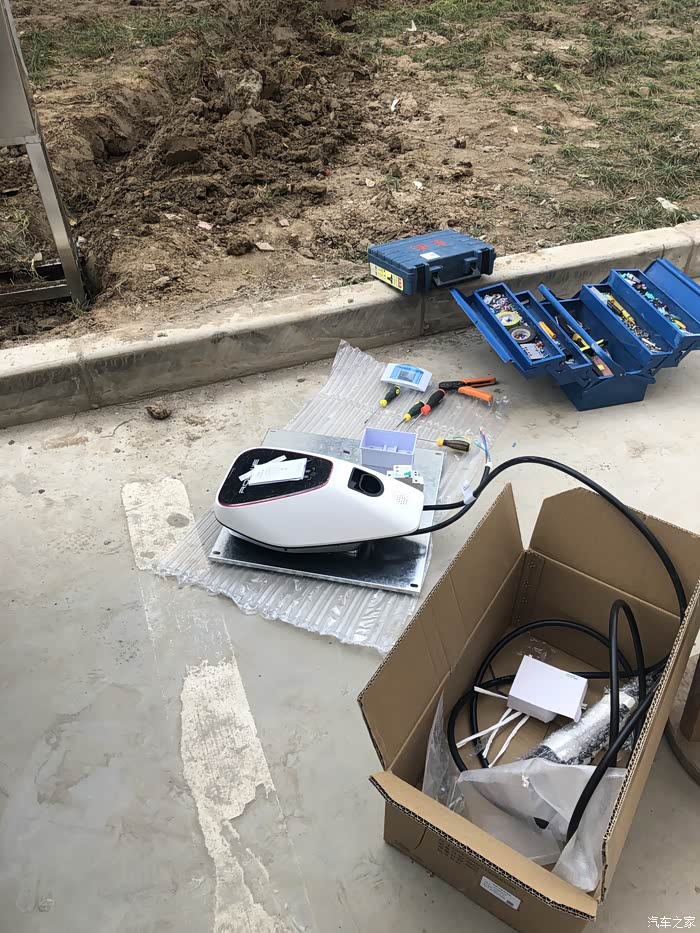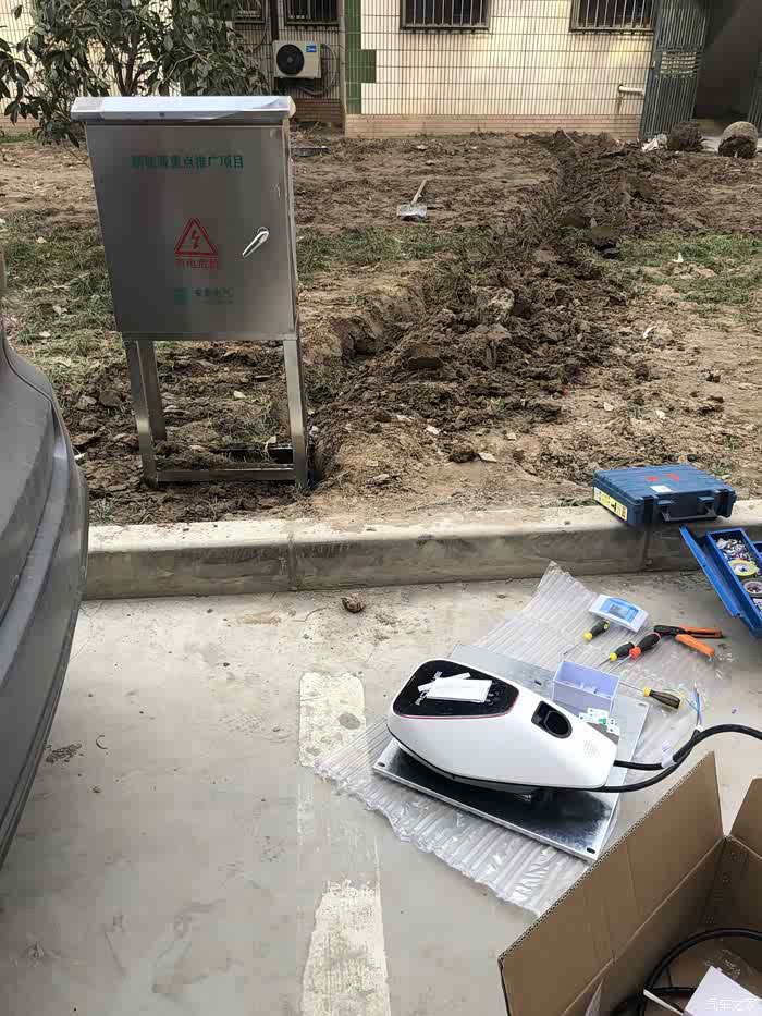 这张图可以看出随便挖的,箱子没有埋好。充电设备随车带过来,免费的。