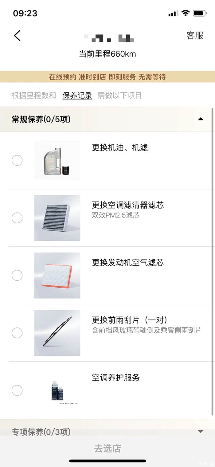 保养可以通过APP预约,按照里程显示保养项目,但是没有显示价格。