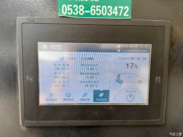 在室外温度三十多度的情况下,连续国道行驶,电池温度还可以。这个应该是去时在泰安充电拍摄的