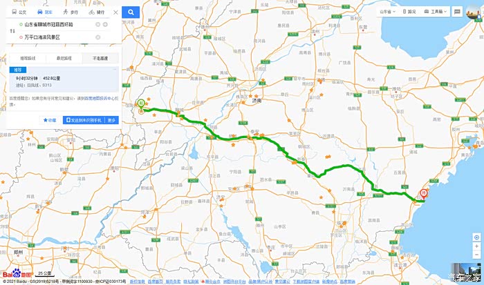 这是路程规划,大约500公里,在泰安、新泰充电两次,预计用时12小时左右
