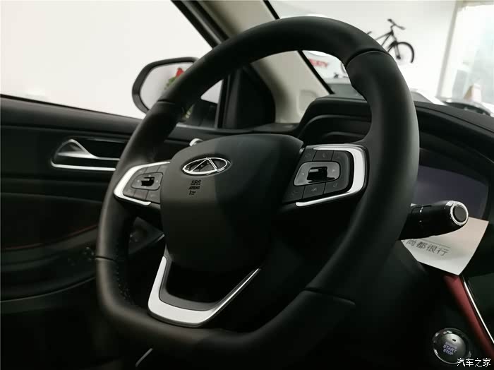 三辐式平底方向盘与艾瑞泽GX完全一致,粗细适中,握感出众。方向盘左侧多功能控制区可调节驾驶辅助选项,右侧可控制多媒体。