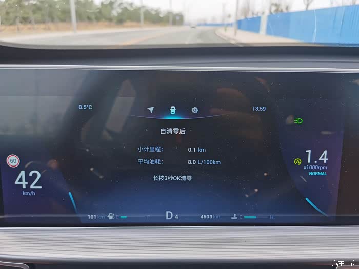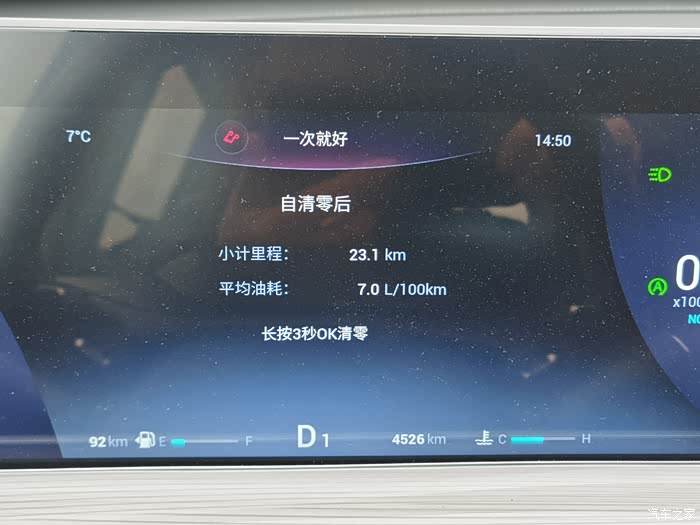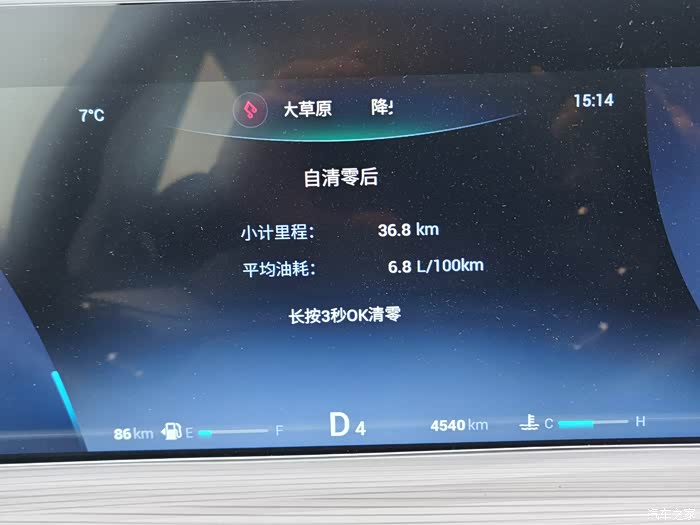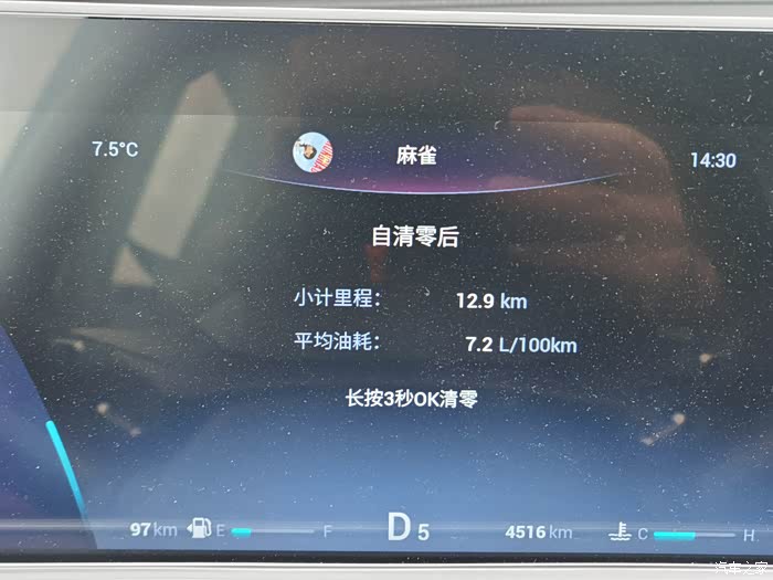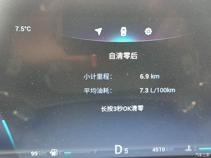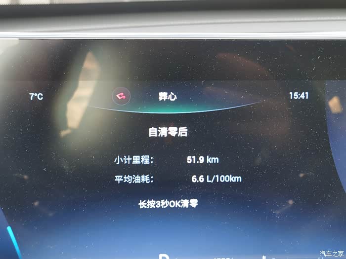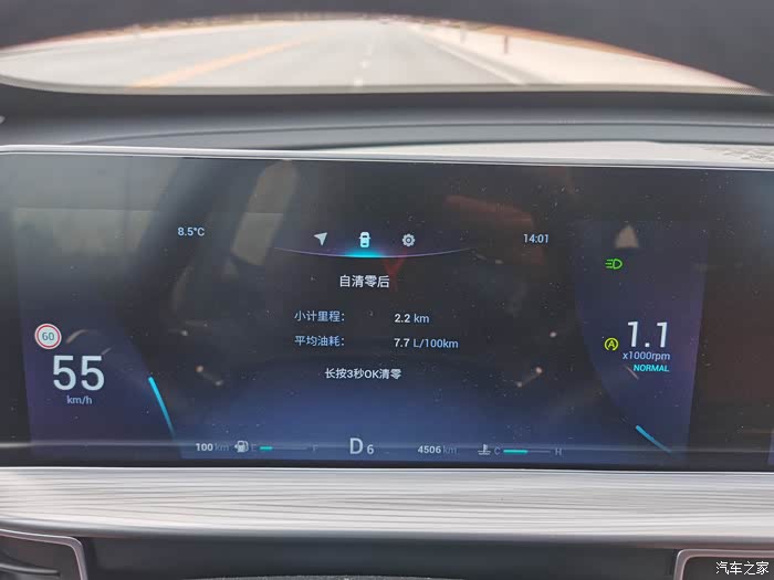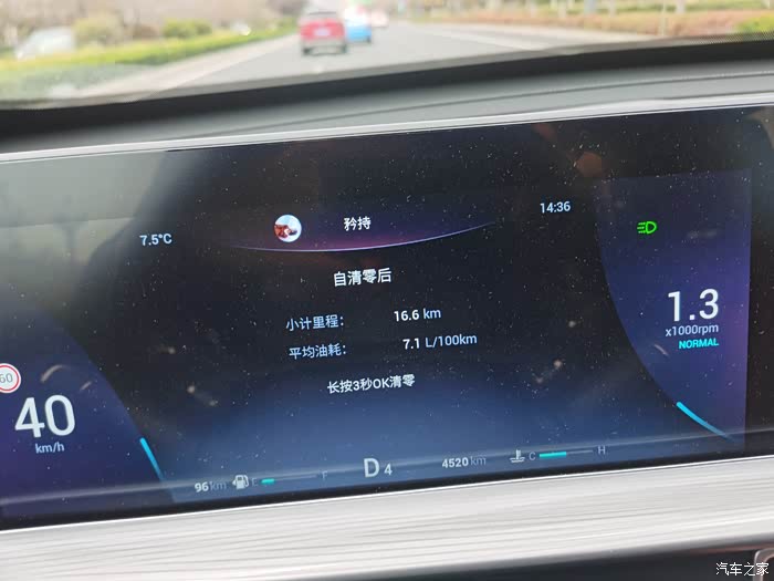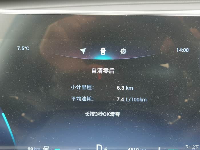 上图为跑了一趟小长途的综合油耗,在开始跑之前清零了平均油耗。