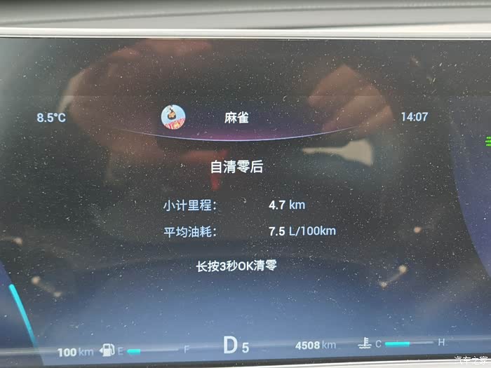 油耗清零,出发,油耗显示8。