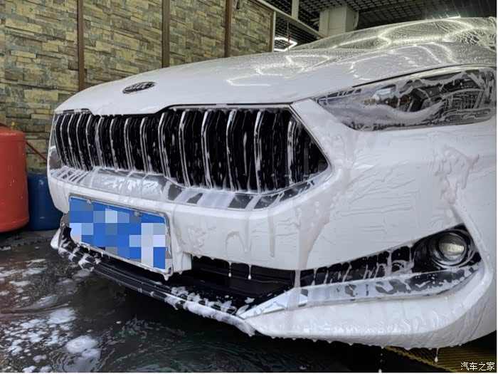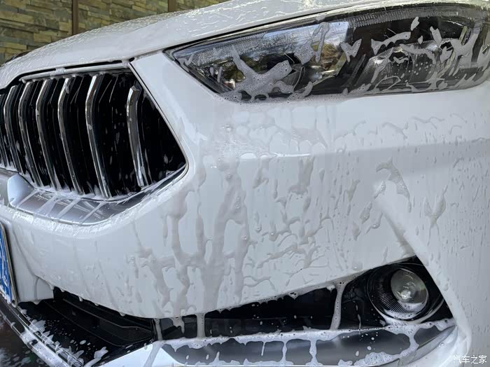 第二步就是打泡沫,我觉得洗车店的泡沫都有独门秘方,我自己也在网上买过洗车泡沫,但用完的效果就是没他们的好。
