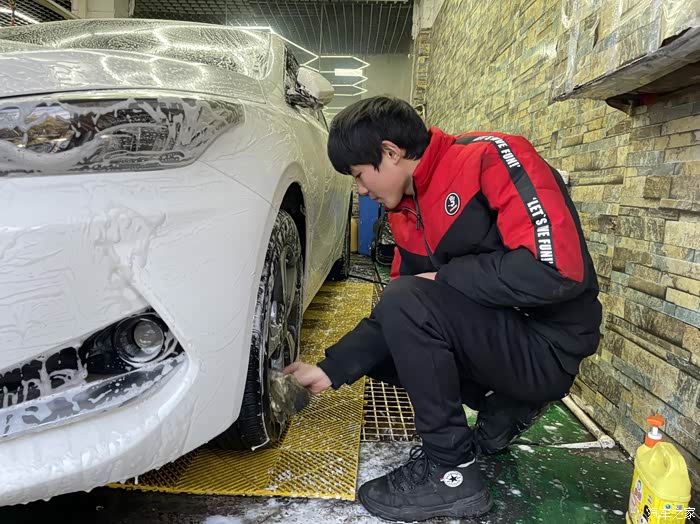 平时就是找停车场里的洗车店随便洗洗,既然马上要过年了,这排面就要安排上,还是这种正规店里的设备多,洗的也更干净。