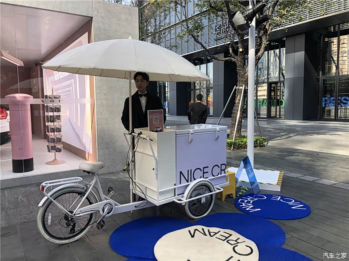 帅气的小哥哥在摆摊卖雪糕哈哈!其实这是沃尔沃的一辆有型的小车!