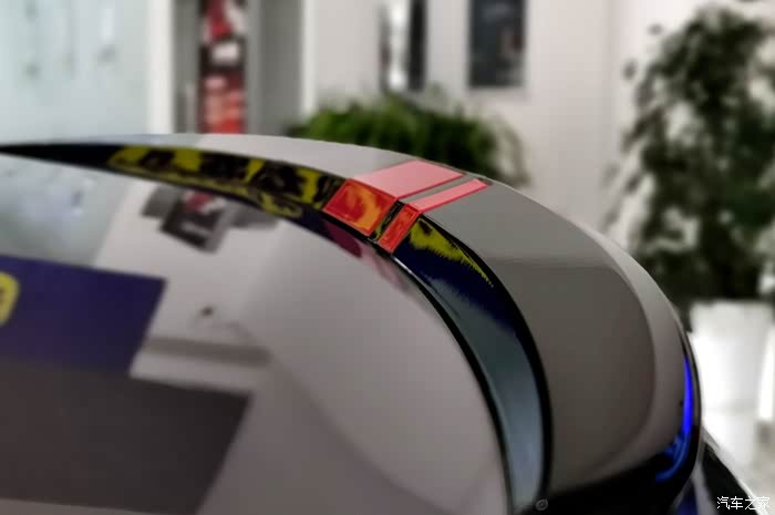 车尾部的点睛之笔要算是RedLine尚红元素的运动小尾翼了,看上去非常帅。