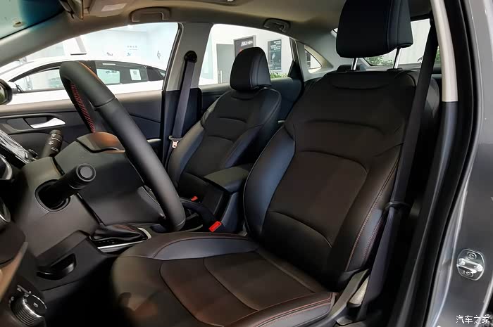 科鲁泽前排座椅采用的皮革材质表面细腻度一般,内部填充物厚实饱满,乘坐舒适感好,但包裹性不足。前排乘坐空间比较充裕,头部空间和横向宽度都表现不错。