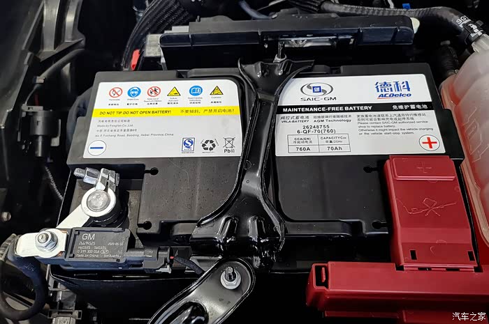 48V轻混磷酸铁锂电池设置在了底盘油箱的右侧,发动机舱内的70AH德科蓄电池为车内用电提供的电瓶。