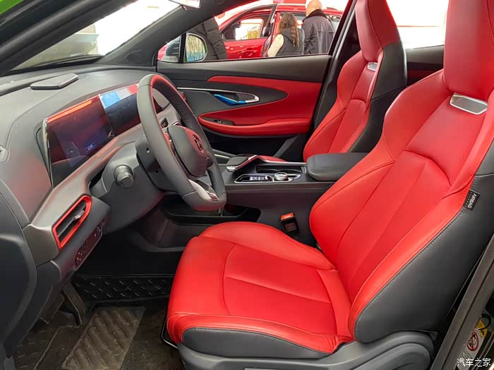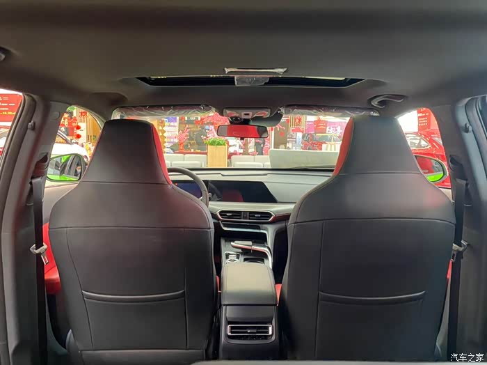 这个内饰也是比较喜欢的,其中最喜欢的是顶棚的黑色内饰和红色的座椅 显得很运动