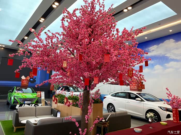 一进展厅门口就看见这么大一颗桃花树,花是假的,树是真的