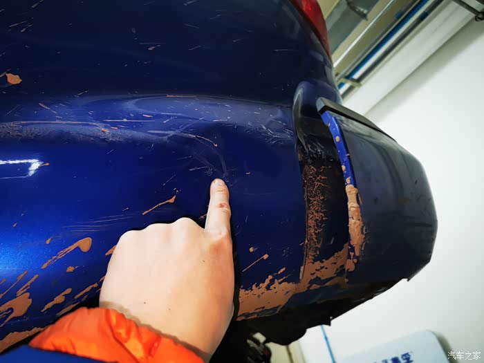 不光后杠坏了,侧面这也瘪进去了,虽然只是皮肉伤,但是还是有些心疼
