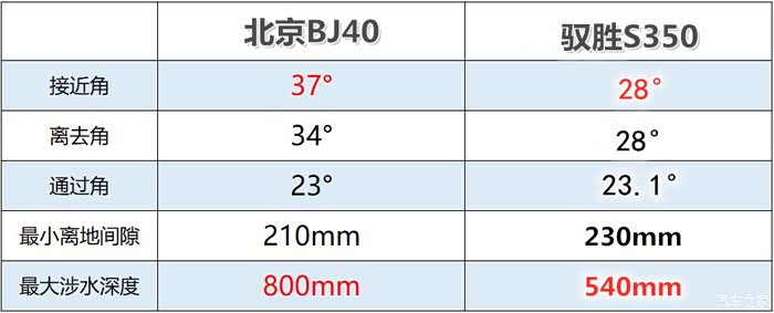 在两者通过性数据上,“方盒子”的北京BJ40是肯定占优势的!但更趋现代化的驭胜S350同样数据也是不错。并且“跨界”的美学设计,其实比传统的构造来讲,优势反而更大!