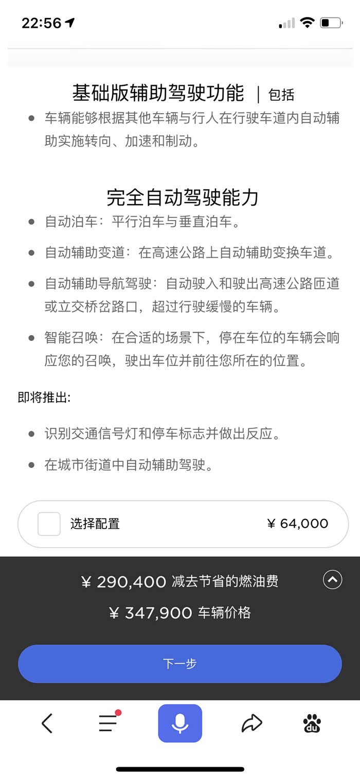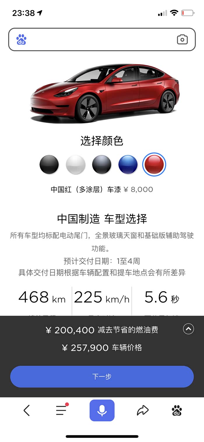 特斯拉除了黑色,其余颜色都要加价8000块。可能有人觉得不多,好,那接着往下看!它的续航468公里!售价20多万!然后的智能驾驶辅助系统需要加价6万多!听起来特斯拉一降再降!可是那只是车的价格!还有其他附加的也需要你来买单,除非你真的买一个裸车!里里外外这个价格已经就将近30万了