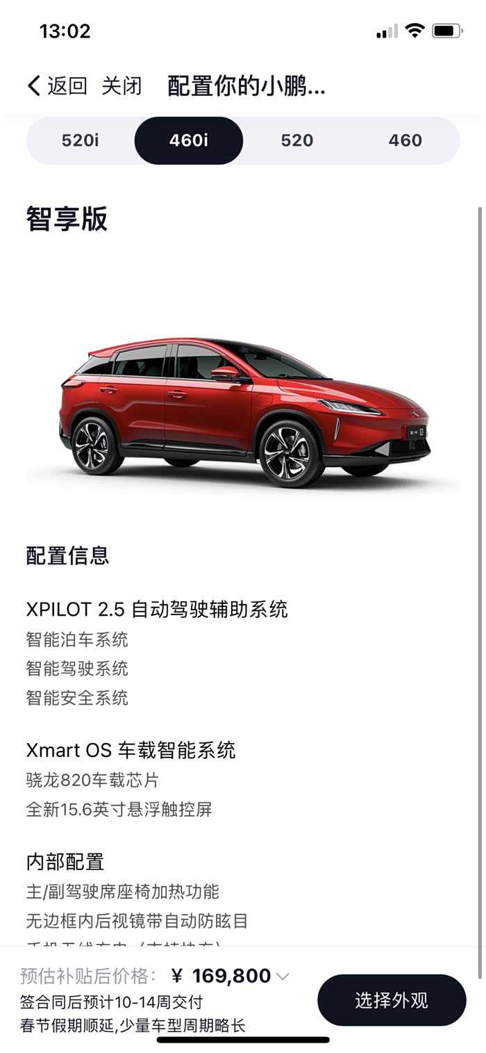 小鹏G3这款460续航的售价为16.98万,包含了智能辅助驾驶系统!当然,如果你不想要,就买悦享版14.98万!而520版本售价也不到20万! 同样的续航,同样的智能驾驶辅助系统,价格却差了不止一两万!有人会说一个轿车一个SUV没有可比性!那么刚好小鹏也有P7,但是我真的不想比,因为没有可比性,简直就是完胜