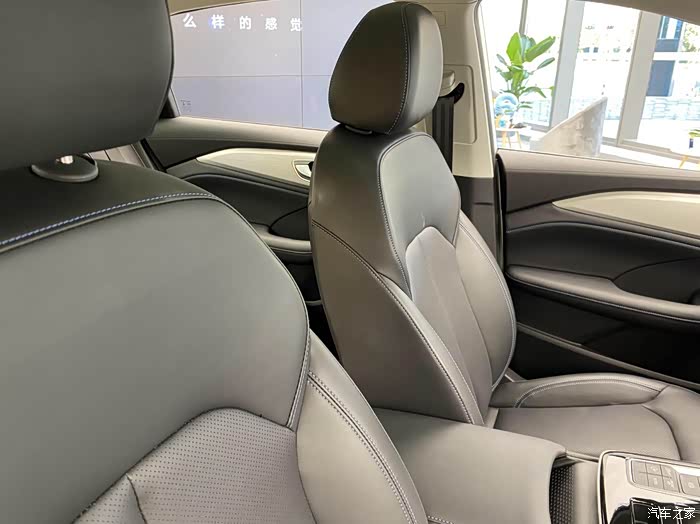 前排的座椅采用打孔的皮革,同时还支持电动调节,配置方面非常到位。