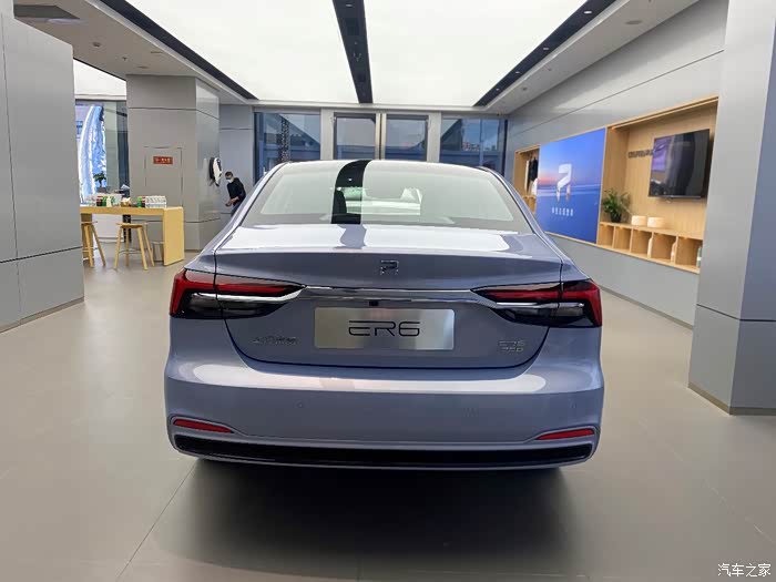 今天拉着同事一起来展厅看看这款ER6,作为上汽今年全新推出的R汽车品牌的第一款车,ER6的外观设计的很时尚,颜色很清新。充电口设计在了车前翼子板的两侧,ER6还支持快充,15分钟就可以充200公里的续航,很优秀。
