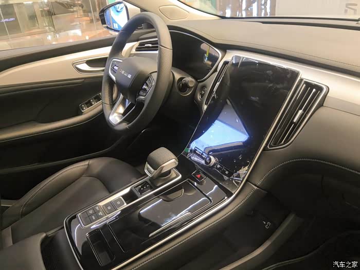 整体中控台采用怀抱式设计,坐到车内给我一种安全感。内饰采用了较为运动的黑色内饰,搭配着银色的饰板,非常的有高级感。