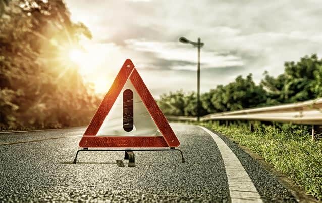 万一在高速上爆胎,应立即开启双闪、滑行至应急车道、在来车方向150米处摆上三角牌,以告知车辆小心避让,如果要等待救援,则车上所有人员需站到护栏外等待。