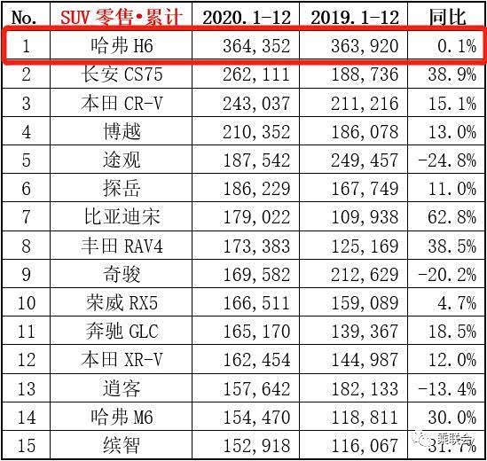 接下来看看SUV领域。哈弗H6依旧稳坐销冠,尽管期间险些被长安CS75反超,但三代H6一上市,差距立马就被拉开了,如果10万左右不知道选择哪款SUV车型,那么就买H6吧!这绝对是错不了的,这款车的各方面都很均衡,尤其是三代H6的产品力,性能、油耗、空间、配置在同级中都处于上游水平。