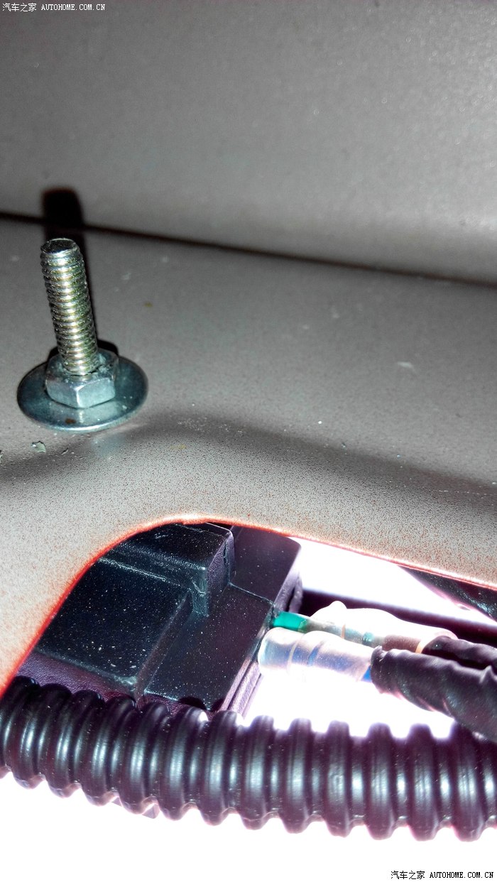 测试OK~把线弄好~与原线路用绝缘胶布绑在一起(只找到一根长杆螺丝~另一个孔用截取下来的钢条~折弯固定)