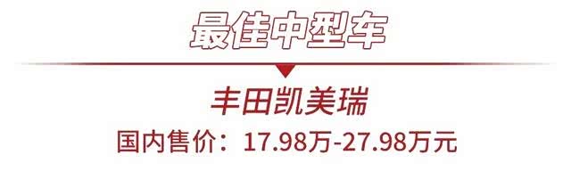 丰田凯美瑞再次获得“最佳中型车”称号,其实力也得到了国内外众多消费者的认可。经过换代之后的凯美瑞基于丰田全新TNGA架构打造,它不仅颜值更为运动年轻,动力系统也进行了升级,燃油经济性也进一步提升。同时,丰田凯美瑞在国内中型车市场上也占有极大的市场份额,2.0L车型使用了可模拟10速的CVT变速箱、全系标配10个安全气囊,进一步提升自身竞争力。