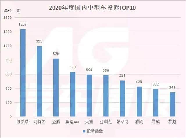 值得一提的是,在国内领先的缺陷汽车产品信息收集平台——《车质网》公布的2020年国内中型车投诉排行榜中,凯美瑞投诉数量达到了惊人的1237宗,在2019年的基础上足足增长了一倍,成为2020年投诉数量最多的B级车。而据了解,这也是中型车年度榜单历史上首次出现车型投诉量破千宗的情况。