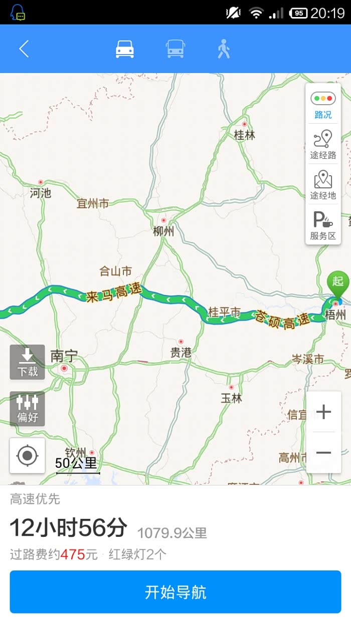 出发,梧州~藤县~桂平~来宾~马山~平果这条路路况好,开得舒服!