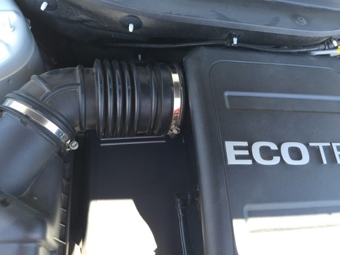 拧下螺丝后这里一边有一个小卡子,不用管它,用力往起提就把进气盖子整个打开了。