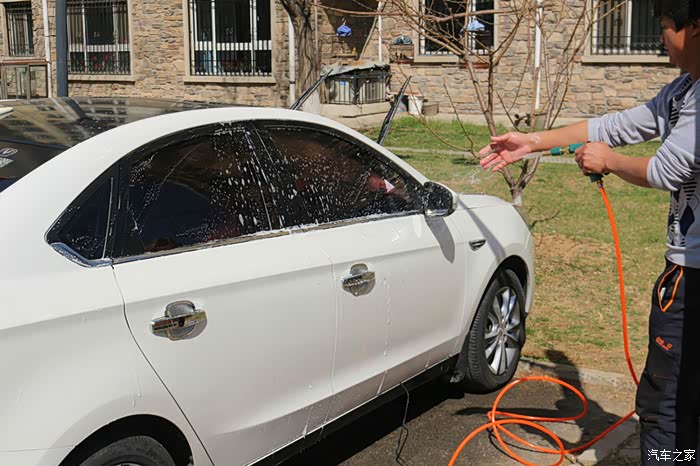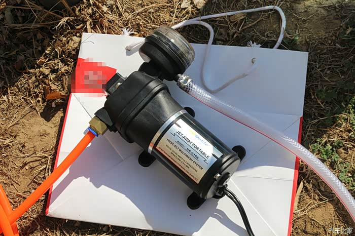 这个洗车器是12V的连接的车载12V插口最好,不要插在点烟器上的插口,应该两边承受能力不一样怕烧坏了,这一天没什么风,晴天温度,是个洗车的好天气,正好下去还能带孩子晒晒太阳挺好,用了一个饮水桶灌了一桶水我想应该够用了,开始用不好,水量调节大了,一会叫我就给用完了哈哈,又去灌了一桶晕,突然感觉是不是很废水呢,后面我就调成了喷雾状态感觉还可以,家用肯定是没问题了,就是肯定不如洗车房压力大。
