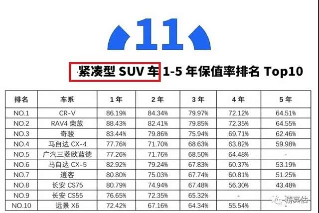 2、其次是“紧凑型SUV保值率”最新排行榜