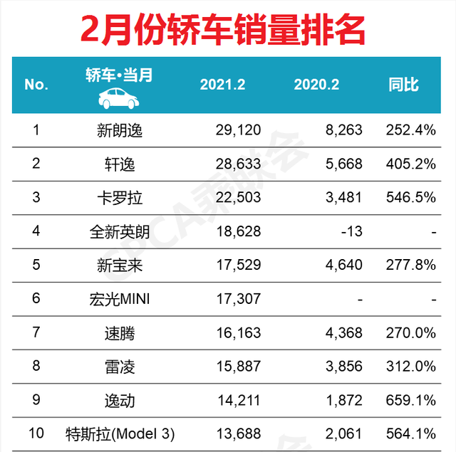 出炉!2月份轿车销量排名公布:新朗逸重回榜首,英朗、逸动前十!