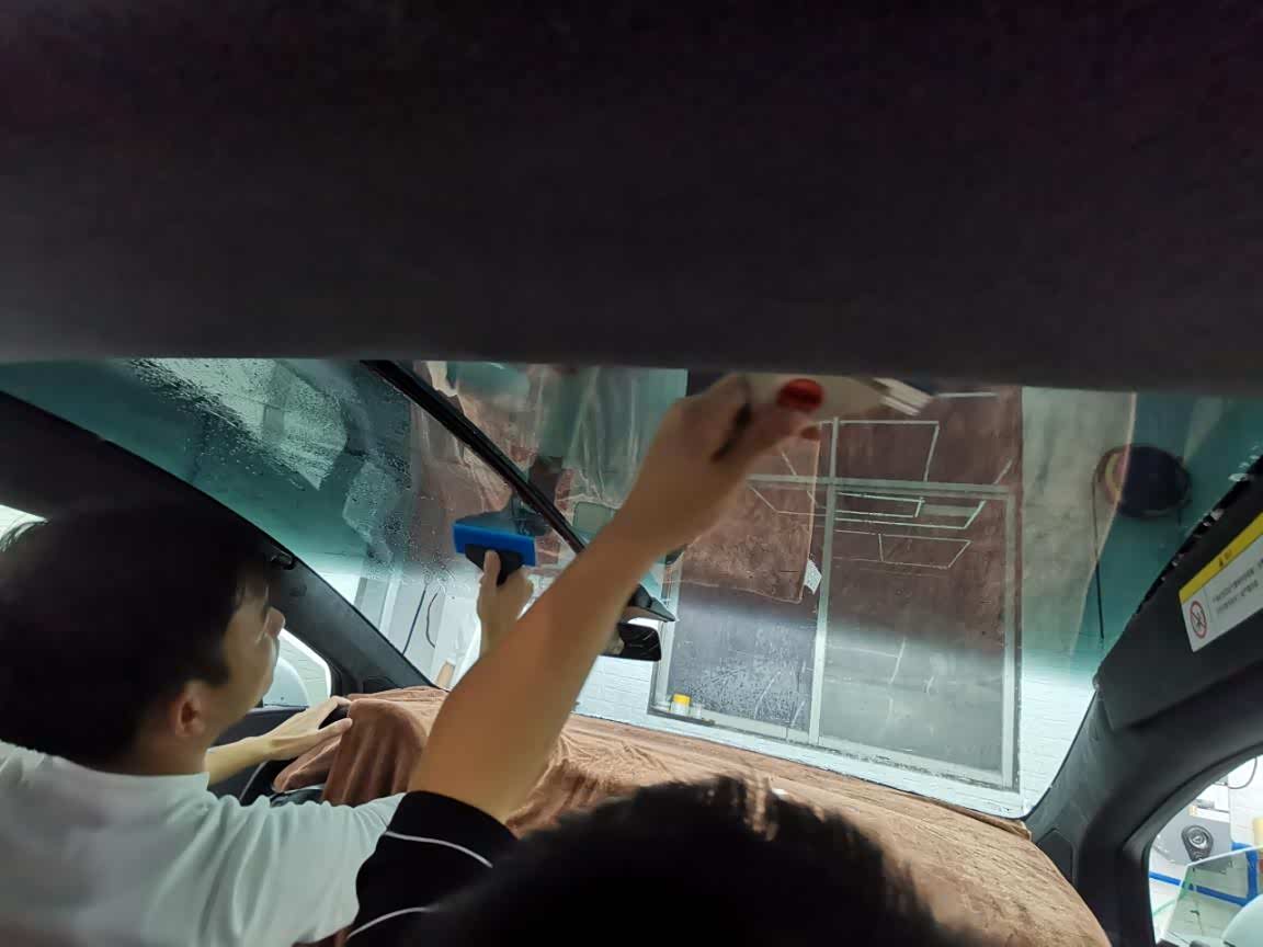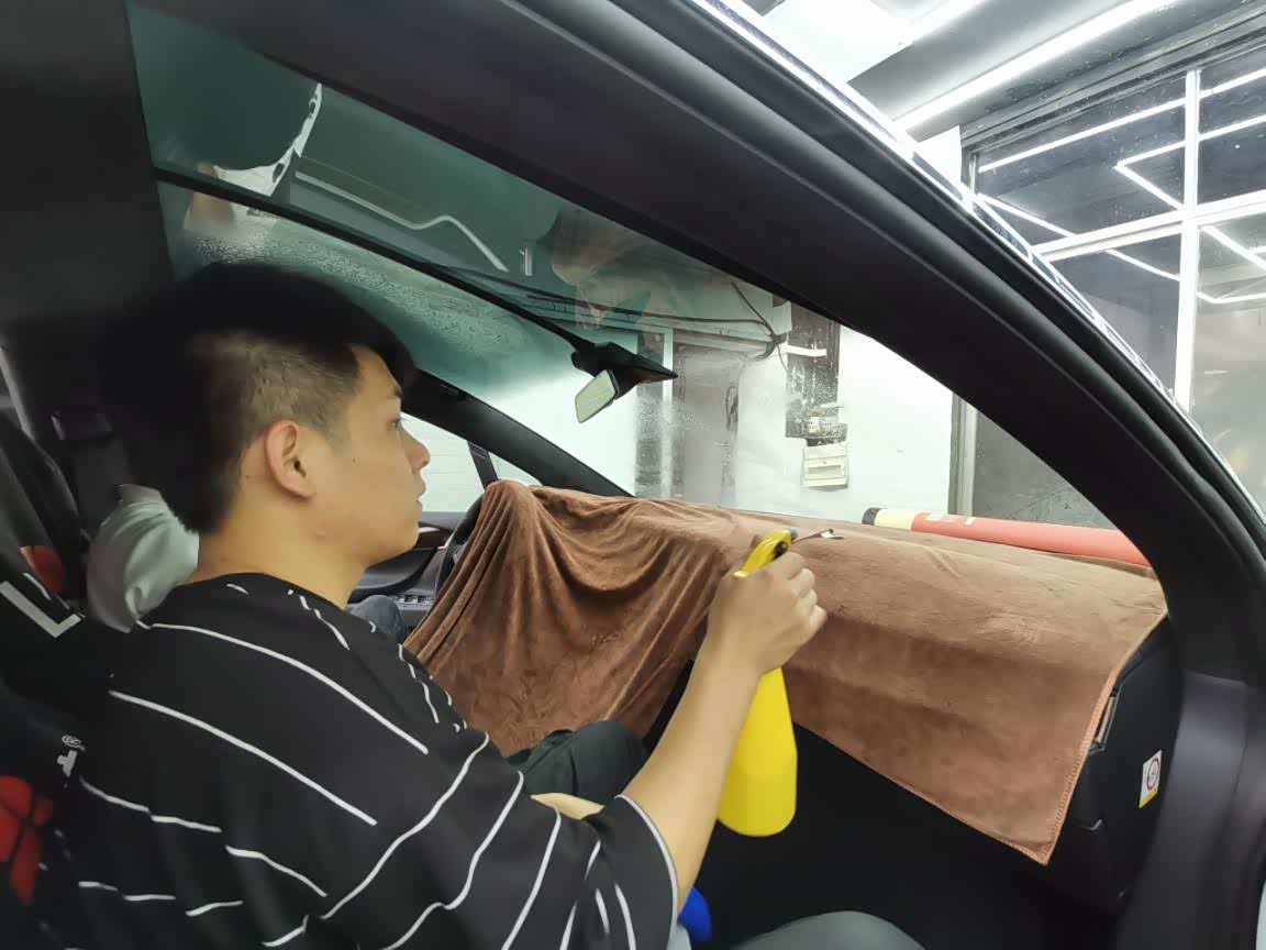 特斯拉的前档链接天窗,对师傅的手艺也提出了新要求,施工的质量也决定了车膜安装的质量。