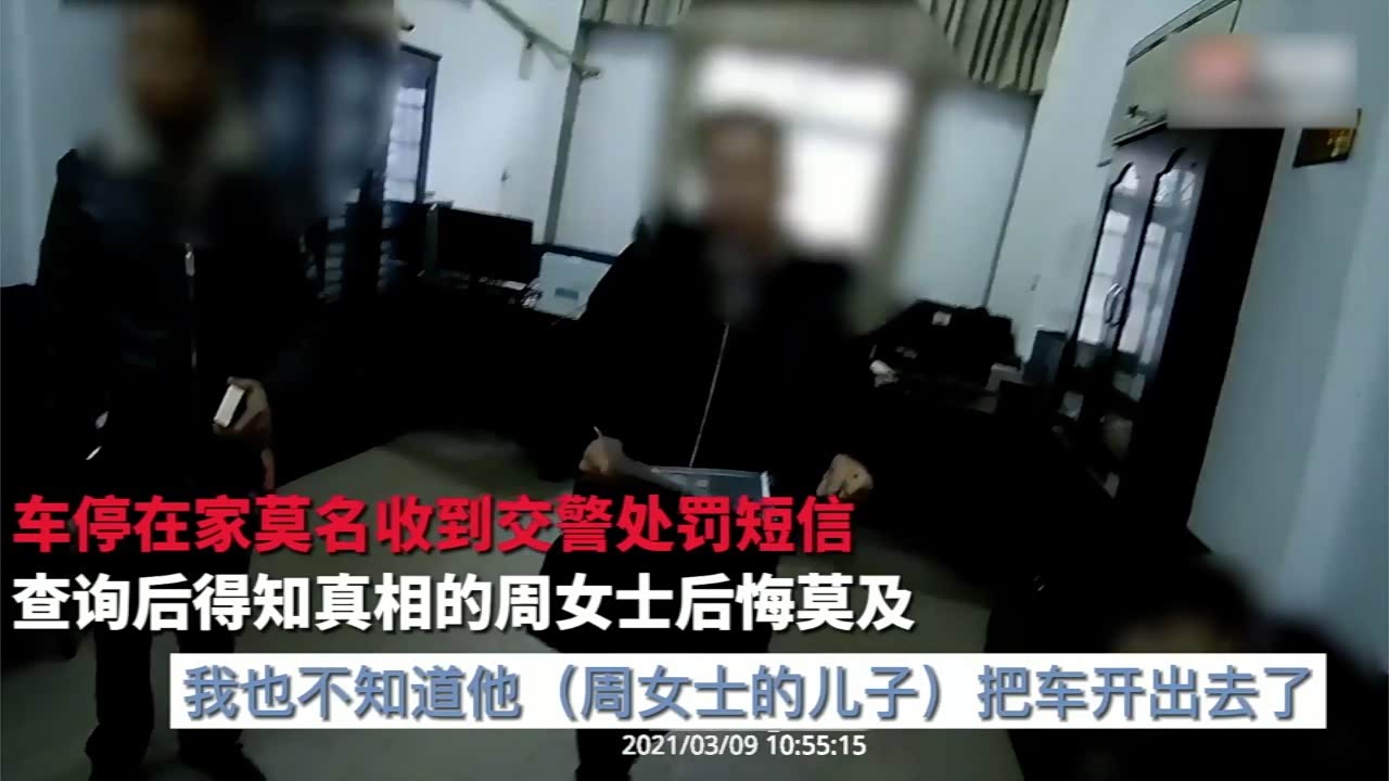 接到投诉后,民警立即将电子监控抓拍的照片及视频调出来,联系周女士前来核对。周女士来到大队后看到违法照片时惊呆了,原来当晚驾驶自己车辆的驾驶人竟是自己未满18周岁的儿子。