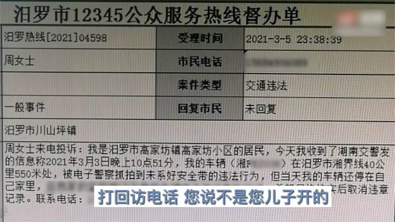 近日,岳阳汨罗交警接到周女士市民投诉称,自己收到短信提示称在3月3日,其车辆被电子警察抓拍到有未系安全带的违法行为,但当天自己并未开车,希望交警部门核实后取消违章。