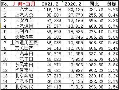 不过两极分化的格局,对于一线品牌的持续壮大贡献依然是非常大的。就拿2月份销量来说,2月份狭义零售销量进入前十的自主品牌有三家,分别是长安、吉利、长城,其中长安销量为9.7万辆;吉利销量为7万辆;长城为6.8万辆,位居国内乘用车市场零售销量排名第3位、第5位、第6位,整体的销量排位还是比较高的,而且长安汽车的销量仅次于一汽大众和上汽大众,超越了上汽通用,吉利和长城则超越了上汽通用五菱、东风日产、广汽丰田、一汽丰田等相对强势的合资品牌。三大一线自主品牌的整体市场冲击力,已经达到了不用畏惧合资品牌厂商的地位,当然我们要和仅仅只是说销量。