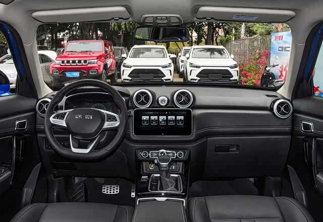 相比较惊艳的外观设计,说实话,北京BJ30的内饰则让人有些失望。先从设计来看,其采用了标准的T型中控造型,而且空调出风口为BJ系列经典设计元素,10.4寸的液晶触控屏设计的很独特,既不是悬浮式也不是嵌入式,就像是后期改装挂上去的一般,而且内饰没有应用镀铬装饰,所以质感欠佳。值得一提的是该车的配置表现很不错,全系搭载了胎压显示、全景天窗、LED大灯、无钥匙进入/启动、真皮座椅、电子驻车等配置,而且后排出风口也全系标配,这点值得称赞。