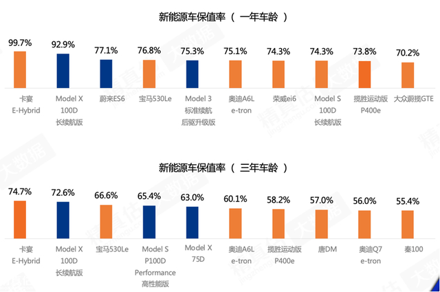 而在2020年12月,特斯拉又凭借64.61%的保值率成功加入豪华品牌阵营。以“三年保值率达到66.3%”高于宝马和奥迪品牌保值率。值得一提的是,2019年保值率排名第一的Model3,已经跌出三年保值率榜单TOP10。显然,这并不奇怪,毕竟它降价的速度,可要远远大于贬值的速度,与此同时,特斯拉国产后,model3负面不断,是其保值率下滑的重要因素。