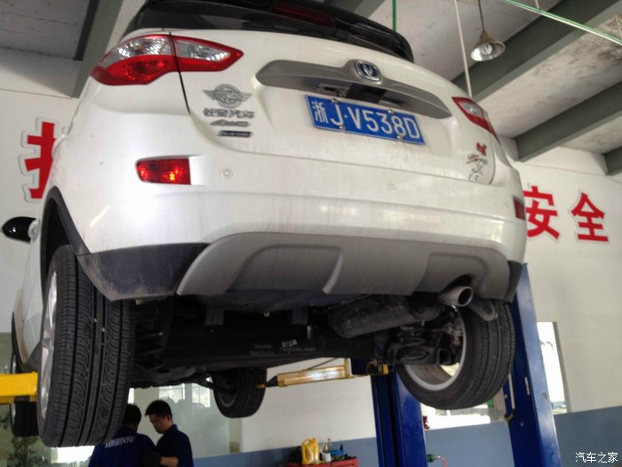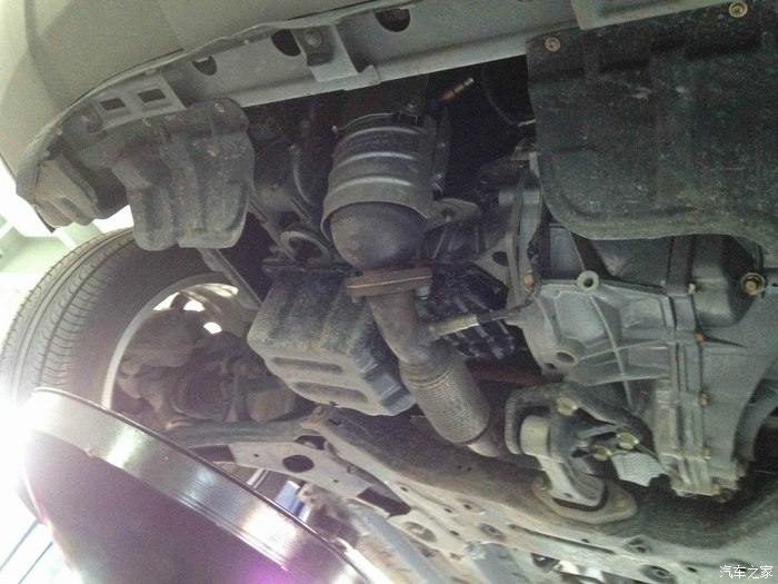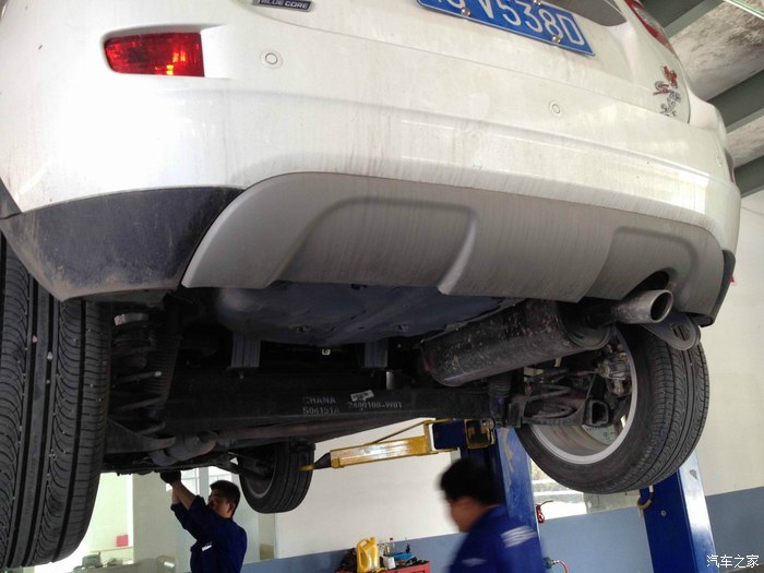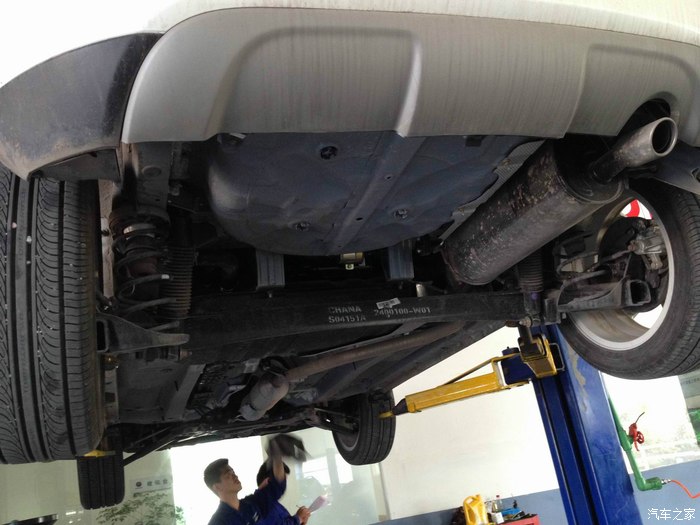 排气中间段好像有点锈,正常? 大家注意看前面的那维修师傅是不是宝强(宝宝)?