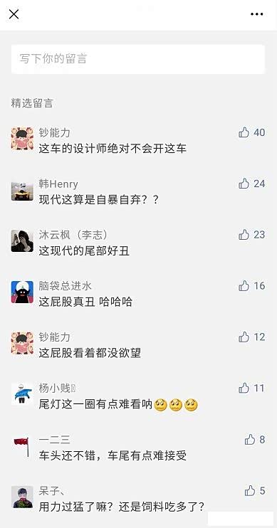此前韩系车颜值总能给人惊艳的感觉,也曾是其最大的卖点。如今现代的车型却屡屡在设计上翻车,这一点现代真是要好好反思一下了。
