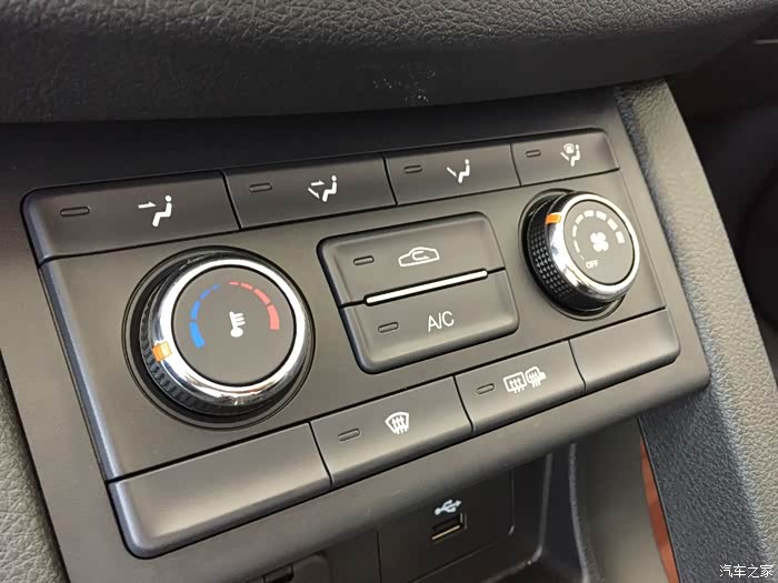 空调面板也很简约,按键功能清楚明了,人机工程学出色。