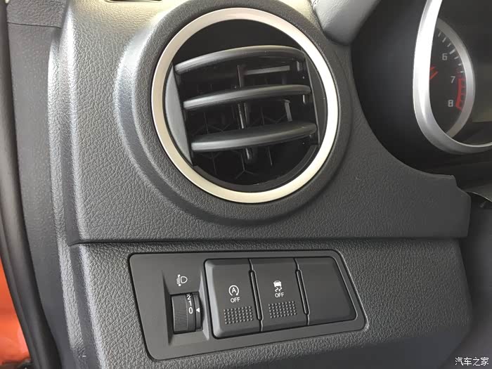 圆形空调出风口,感觉这设计和整车年轻时尚的风格有些不搭调。