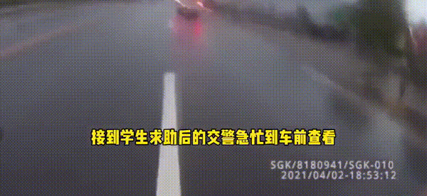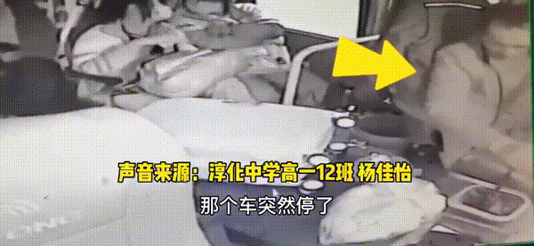 从监控中可以看到班车行驶到211国道与232县道交叉的十字路口附近,眼看就快上高速了却逐渐减速,并在路边缓缓停了下来。一名离司机比较近的同学觉得不太对劲,和司机说他要上厕所,但司机只是点头却没有开车门,同学便选择跳窗求救,还找来了交警。