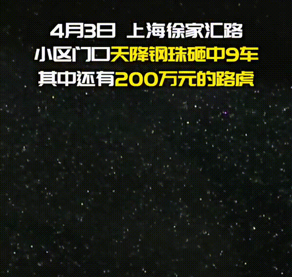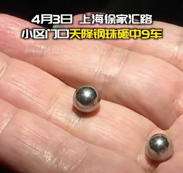 4月3日,上海徐家汇路上的一个小区门口停车场上空,突然掉落几十颗钢珠,砸中了楼下停放着的9辆车,其中不乏高档汽车。在被砸车辆周围,安保人员在现场收集到约20颗这样的钢珠。