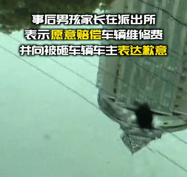 民警赶到现场调查后,已经找到肇事者。肇事者是一名12岁左右的小男孩。事发后,家长在派出所表示愿意赔偿,并向被砸车辆车主表达歉意。目前,民警正在对被砸的9辆车进行车损统计,初步估计损失超过10万元。