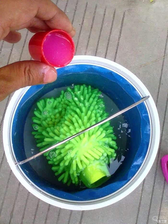 先在水桶里加入洗车剂,当然,就用洗洁精也行的哈哈