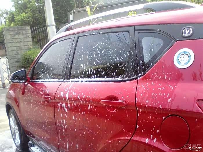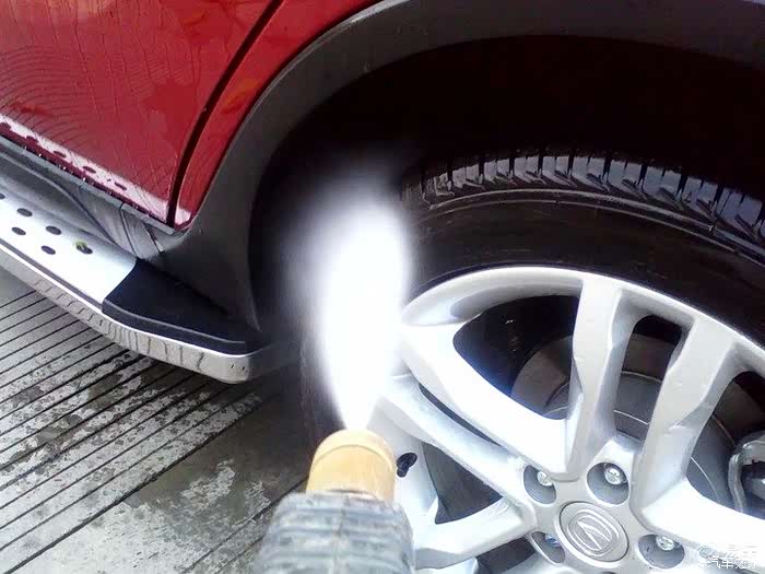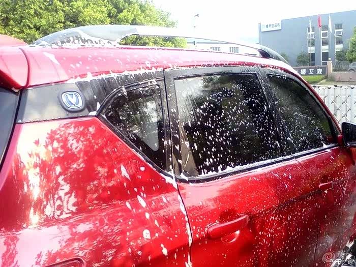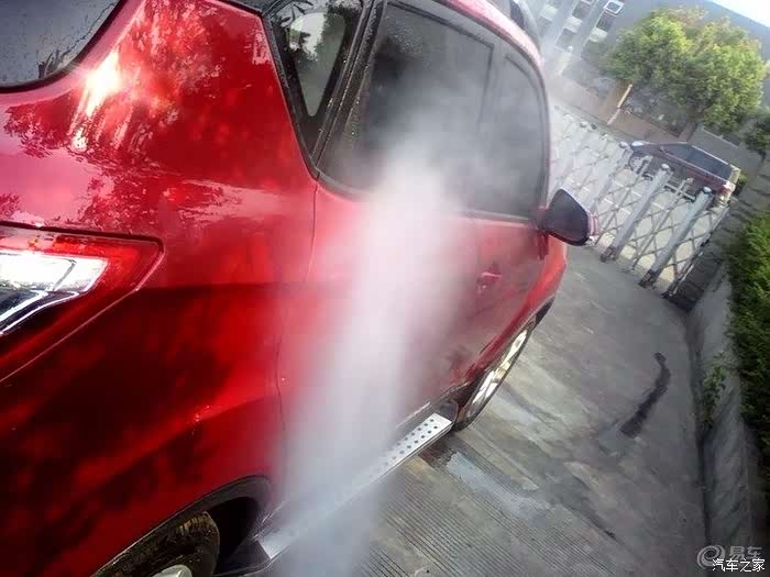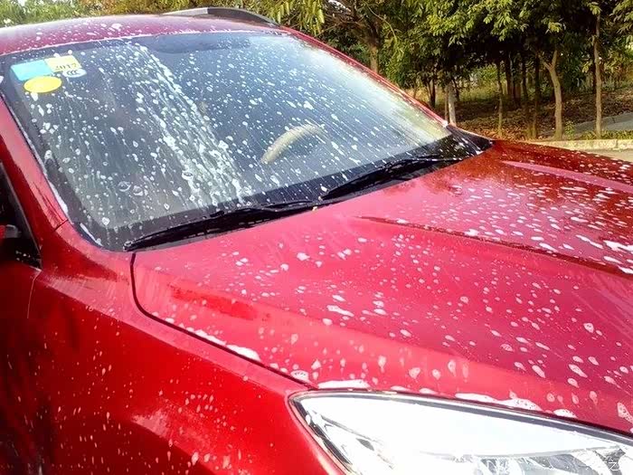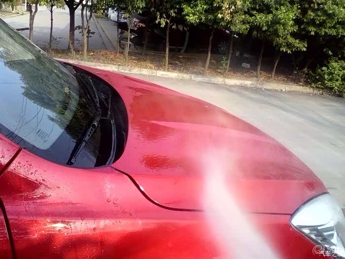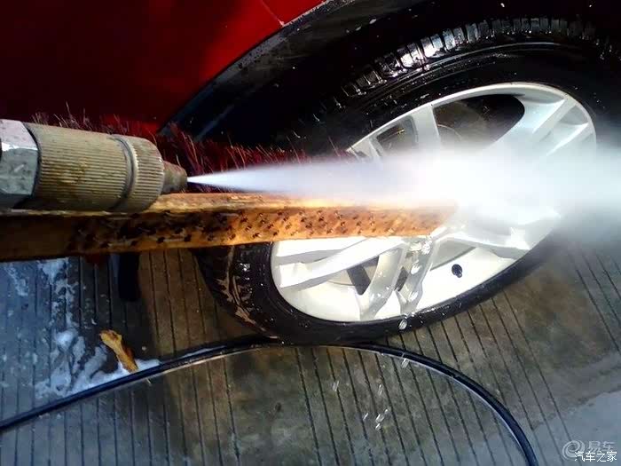 擦完以后,用高压水枪冲洗,同时最好是用毛巾边冲边擦,我用了刷子,不过容易伤车漆