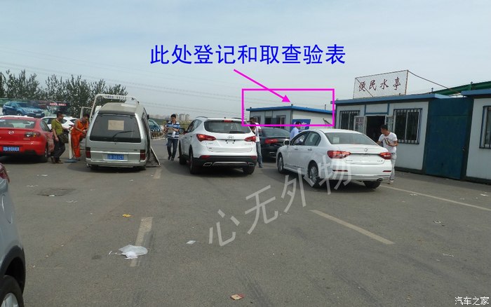 将车开到流程图中的1处,等待查验车辆。早上最好早一点去。在蓝色铁皮房内取查验表。先拿出身份证和车辆合格证到蓝色铁皮房里电脑前的女工作人员处扫描登录。