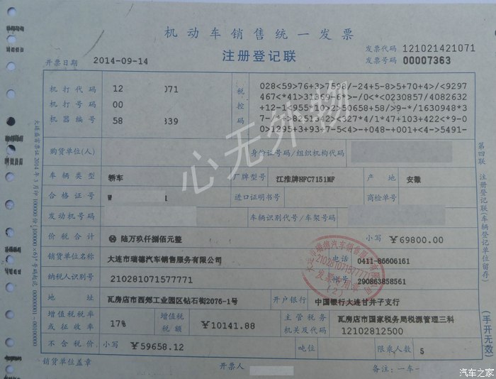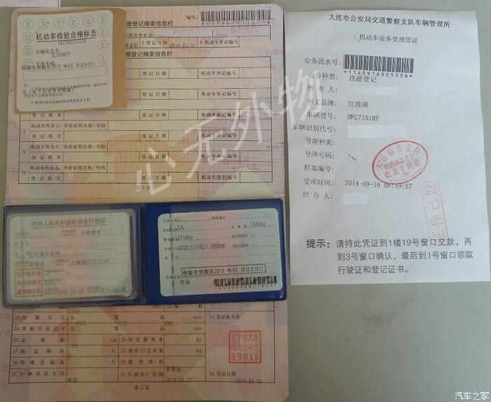领到的登记证书,行驶证和检验合格贴。