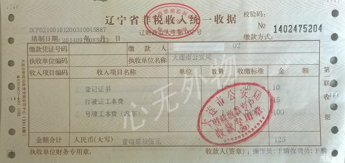 把这张收据交到交票的窗口做牌照。